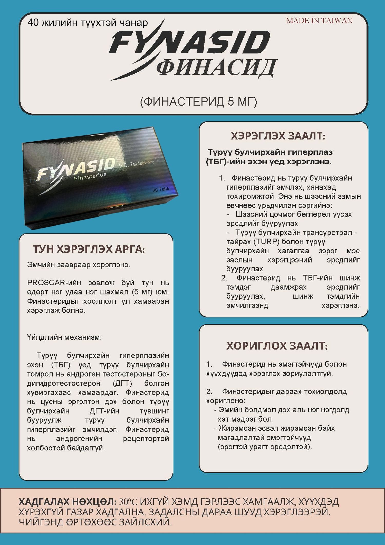 Бөөрний дутагдал: Фармакокинетикийн судалгаагаар финастеридын тархалт, хувирал, ялгаралтын хувьд мэдэгдэхүйц ялгаа байхгүй байна. Тиймээс бөөрний дутагдалтай өвчтөнд (креатинины клиренс 9 мл/минутаас бага байсан ч) тунг тохируулах шаардлагагүй.